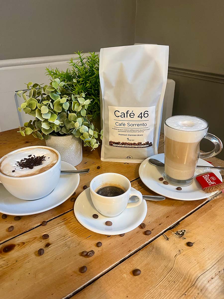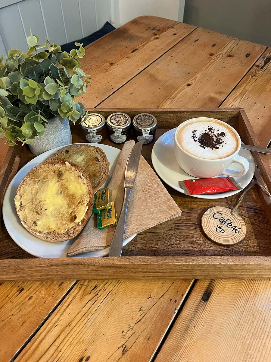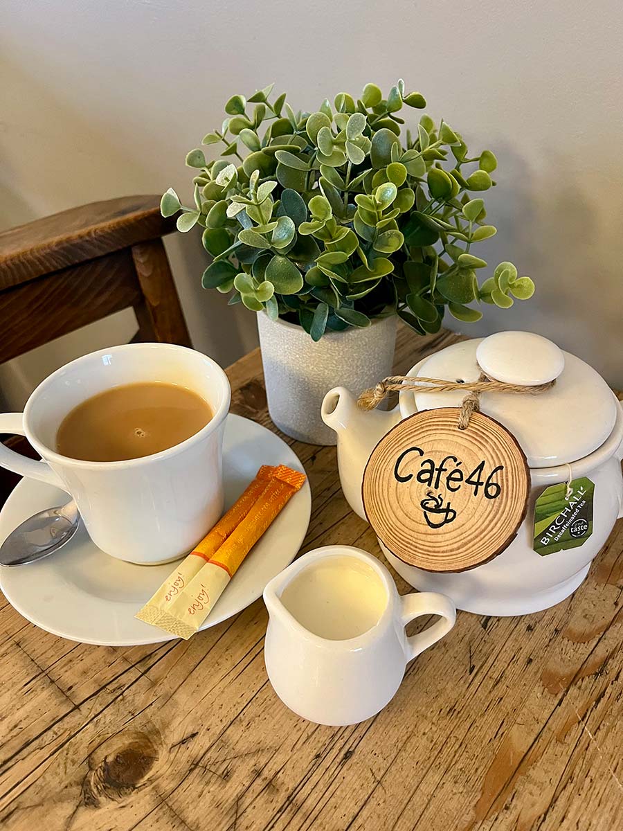 Welcome to Cafe 46, ideally situated facing the historic market square in the heart of Wickham Market. We invite you to drop in from morning to early afternoon for a truly satisfying cafe experience. Our menu features: Delicious handcrafted cakes Hearty bacon or sausage baps Classic toasties and sandwiches Fresh coffee and tea We use only the finest local ingredients to ensure every bite is tasty and fresh. A Welcoming Space for Everyone whether you’re looking for a peaceful hour to yourself, a spot to catch up on emails using our free Wi-Fi, or a comfortable place to meet friends, our cafe is the perfect spot. We make your coffee exactly the way you like it. Cyclists are especially welcome! We know you’re on the route, so feel free to drop in, refuel, and boost your energy levels with a tasty snack and a warm drink